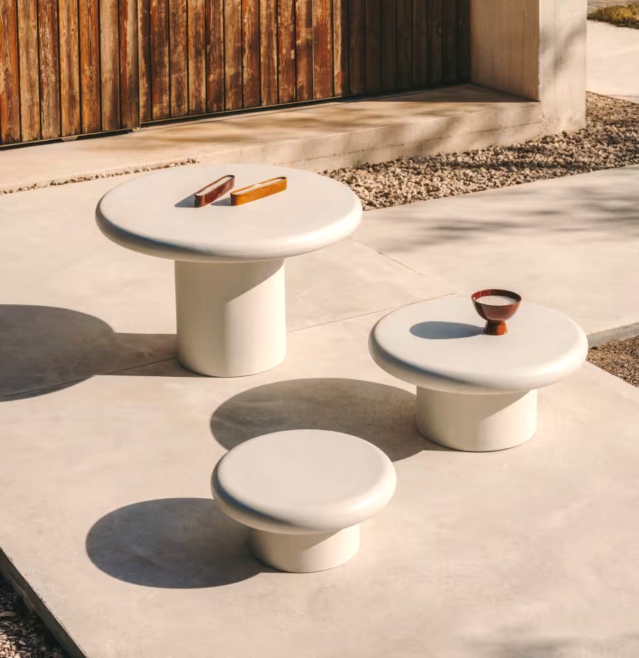 The rounded design of the Addaia Round White Cement Coffee Table owes its shape to the purity of white cement. Each piece, with its own unique texture, speaks of simplicity elevated to art. The Addaia collection is available in a wide range of sizes, which adapt to your space to create an environment tailor-made for you.