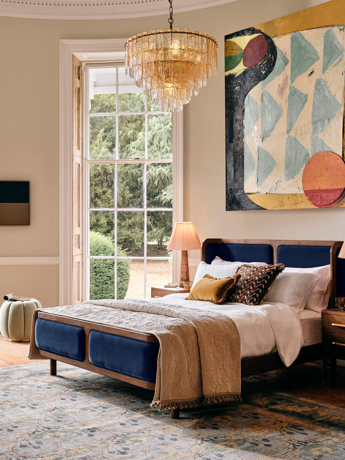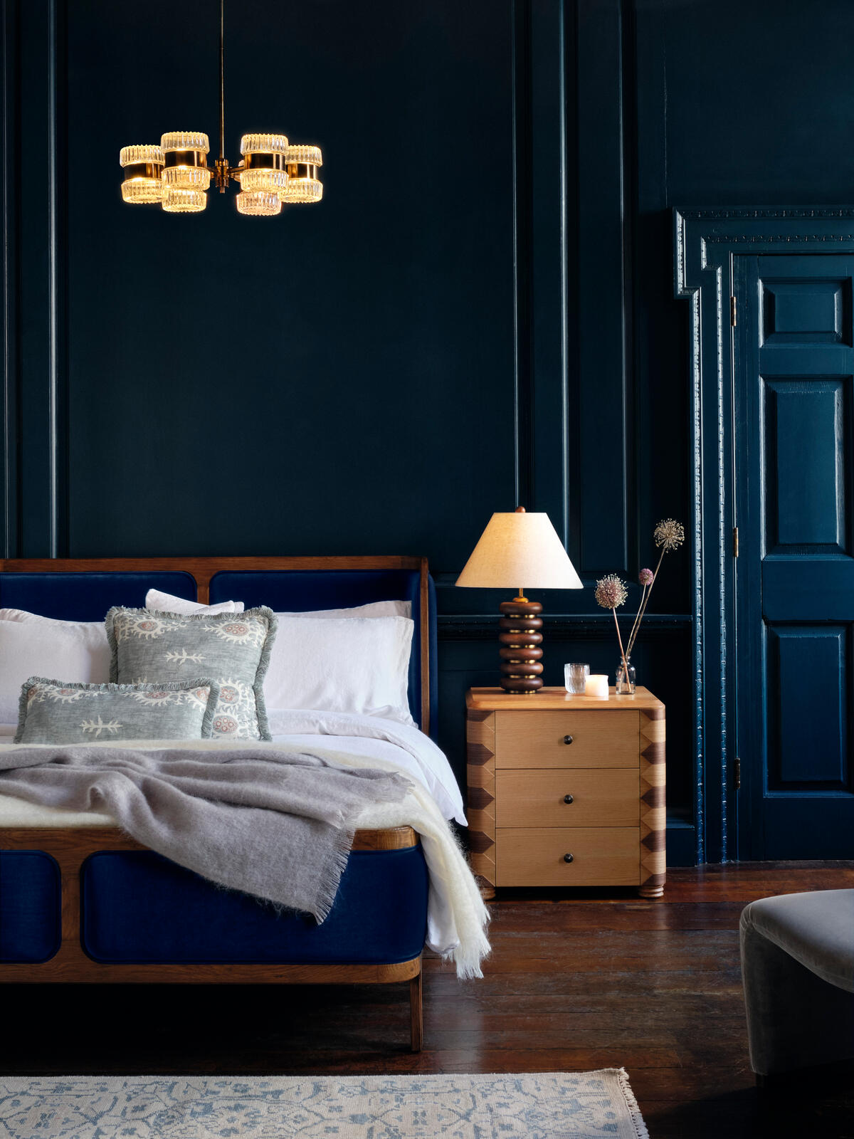 • Velvet upholstered headboard and footboard