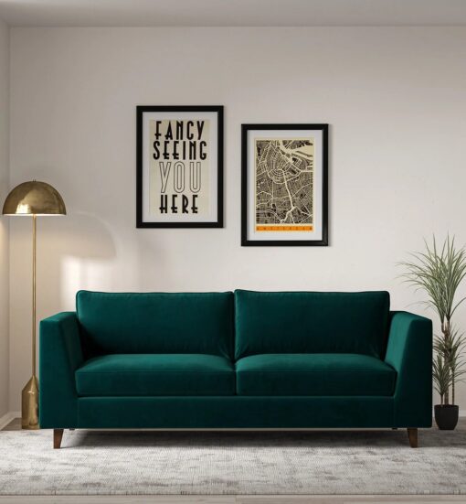 A fine-looking mid century modern sofa if ever we saw one. The Claudia Angular Velvet 3 Seater Sofa has a tailored apperance, with modern shapes and angled sides. But don’t let these clean lines fool you – the Claudia is as comfortable as it is contemporary. A blissfully squidgy feathery seat is paired with a deep cushioned back, promising the comfiest sit.