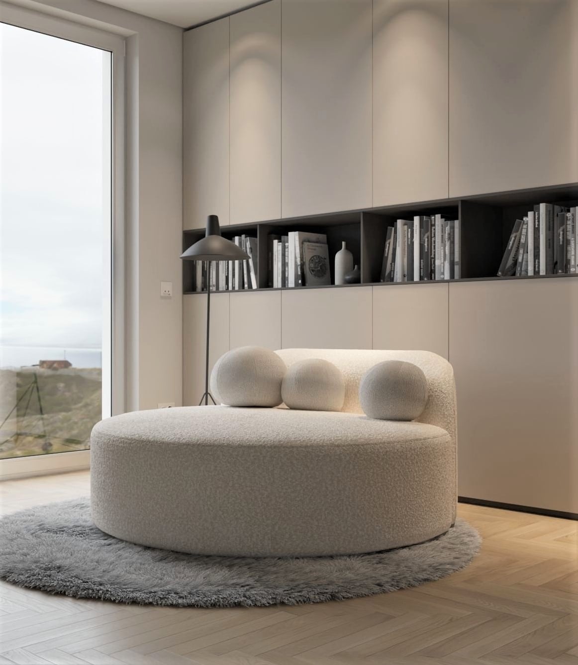 Invite fabulous mid century modern sofa design into your home with the round Eichholtz Björn Round Sofa. Surprisingly comfortable, this lovely round sofa with cream-coloured bouclé upholstery will deliver a luxurious touch to every living room. Add a couple of throw pillows and it will be your favourite place in the house!