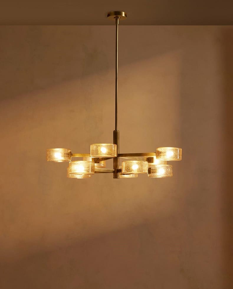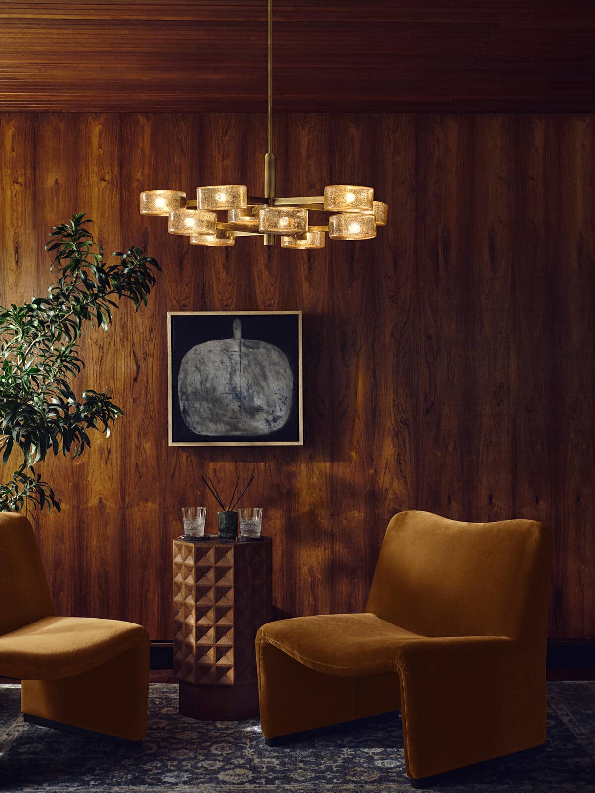 The Laurel chandelier is a contemporary take on classic chandelier styles. An arrangement of mouth-blown glass disc shades is a shining example of quality craftsmanship with a smoked finish to bathe the room in a warm glow. Antique brass arm detail echo the 70s-inspired interiors of 180 House with its versatile shape designed to elevate the concept of a room and take it to the next level.