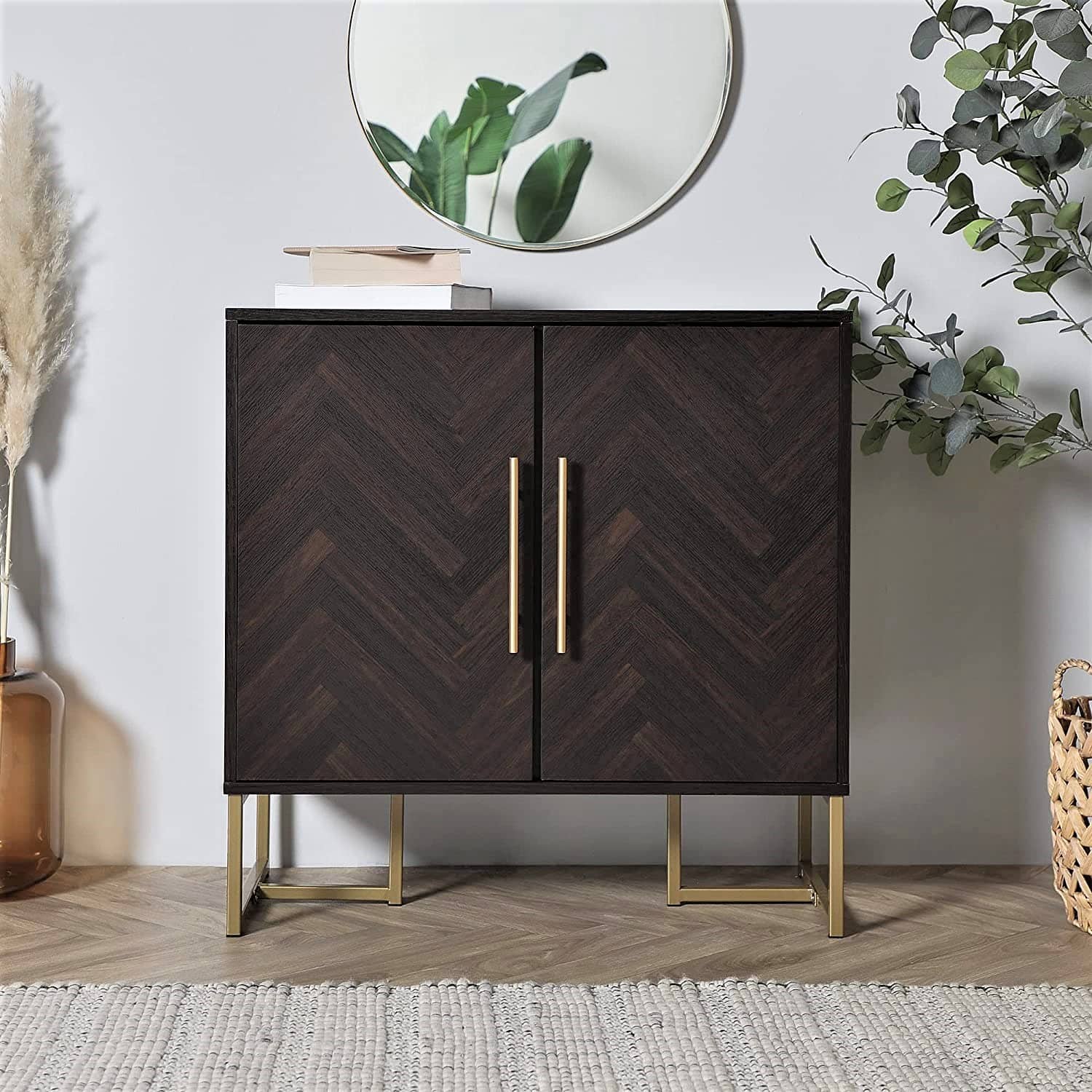 Crafted with deep walnut veneer parquet design, the Parquet Design Sideboard is beautifully accented by a gold-plated steel frame for that luxurious feel.
