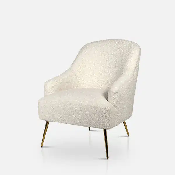 This is one of our cosiest chairs. With its deep seat, curvy shape and soft faux fur fabric, the cream Rya faux sheepskin armchair will provide one of the most glamorous spots in the house to relax and unwind in. Designed with luxury in mind, this chair ups the look of any room in an instant. Finished off with four golden legs, every part of this chair exudes style.